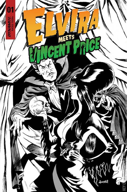Elvira is back, with her most historic AND greatest costar ever! The ghost of Vincent Price is a spirit with a mission, and only the Mistress of the Dark can help! The Apocalypse is coming, and it's going to be live-streamed for binge-watching, but a long-lost movie can save the world... if only the movie star specter and the horror hostess with the mostest can find it in time! Thrills, chills, and all sorts of terrible puns! Issue #1 features an all-star cast of cover artists, including fan favorites Dave Acosta, John Royle, series artist Juan Samu and a stunning photo of the gorgeous lady herself - Elvira: Mistress of the Dark!