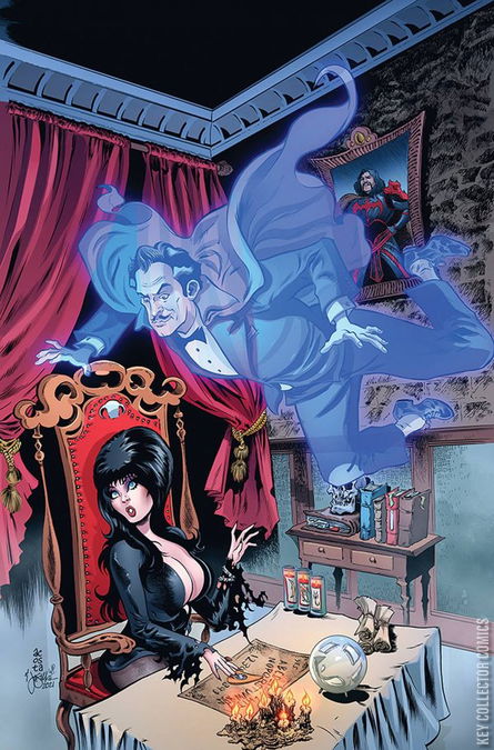 The two titans of horror and comedy unite in comics for the very first time! Dynamite Entertainment Proudly Presents... Elvira Meets Vincent Price! Elvira and the Ghost of Vincent Price continue their quest to find a lost cult movie... AND save the world from the wrath of an awakened Egyptian god. Their journey takes them to the crumbling country estate of a reclusive film director and his movie-star bride, but things go all Dr. Phibes before you can say House of Usher! Come for the sexy horror, stay for the terrible puns and movie trivia!