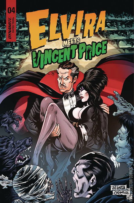 Amunet reads The Spell of the Final Day, and Amun-Ra returns, bringing death and destruction with him! And everyone's invited to watch on their favorite streaming service! Can they be stopped? Can the Mistress of the Dark save the world from a pair of ancient gods... armed only with a DVD of an unreleased horror movie from the seventies? Sure, it sounds crazy when you put it like that, but you won't know just how crazy 'til you read "Inglorious Bastet," the thrilling conclusion of Elvira and Vincent Price's first adventure together... brought to you by writer David Avallone (Bettie Page, Drawing Blood) and artist Juan Samu. And the mistress of the dark has never looked better under this busty bevy of covers: Acosta! Samu! Marques/Bone and a photo of the lady herself!