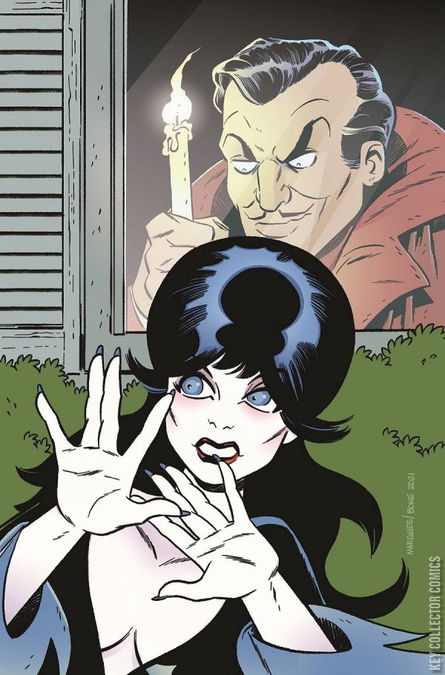 A famous "scream queen" actress is missing, and Elvira and Vincent Price join forces again to find her... even if it means literally breaking the fourth wall, and entering the world of a slasher movie. Can the Mistress of the Dark save the Final Girl before a sadistic director traps her forever in a digital nightmare? Meta-thrills, chills and bad puns from writer David Avallone (Bettie Page, Drawing Blood) and Juan Samu! And the mistress of the dark has never looked better under this busty bevy of covers: Acosta! Samu! Marques/Bone and a photo of the lady herself!