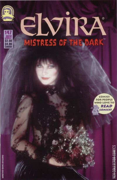 Cover Photo by David Goldner. Stories by Frank Strom and Richard Howell. Art by Eduardo Barreto, Richard Howell and Joe Rubinstein. Elvira's the magic consultant of the new thriller by demon filmmaker M. Dark Shyvverman -- but she might want to quit when real demons take over in "Ghouls on Film!" Also, vampire wannabes disrupt fraternity hazings in "Hoodoo Academy Part 2: The Brotherly Hood"!