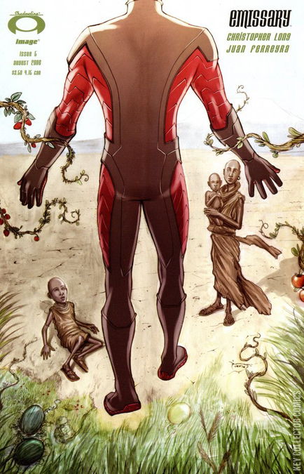 "REVELATIONS 2:1" A new story arc begins here! Emissary spans the globe in an effort to gain deeper insight into humanity, both its achievements and its atrocities. Meanwhile, a secret think-tank in the U.S. Capitol convenes to devise a strategy to bring him down - by any means possible!
