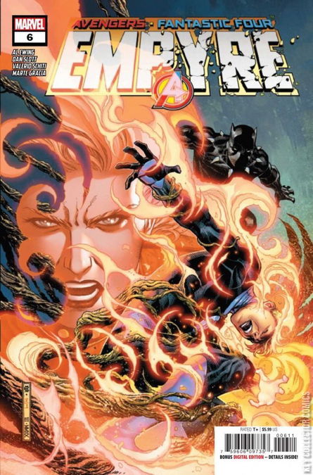 PART SIX Who will rule the EMPYRE? There can be only one King of Space—and it's the last liege standing! But as combat rages on, the clock ticks down to catastrophe! Will the ultimate interstellar weapon fry planet Earth before or after all sentient life on the planet is wiped out? The Avengers and the Fantastic Four are tested as never before—as EMPYRE comes to a pulse-pounding finish! Continues in Empyre: Aftermath Avengers #1 and Empyre: Fallout Fantastic Four #1