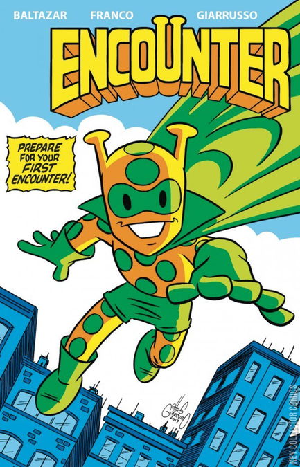 A brand new series by Tiny Titans creators Art Baltazar and Franco! Encounter is a new kind of hero; an alien escaped from his planet to Earth, who can take any form he chooses, and decides to become a hero! With help from his talking dog Barko, he fights crime on our planet.