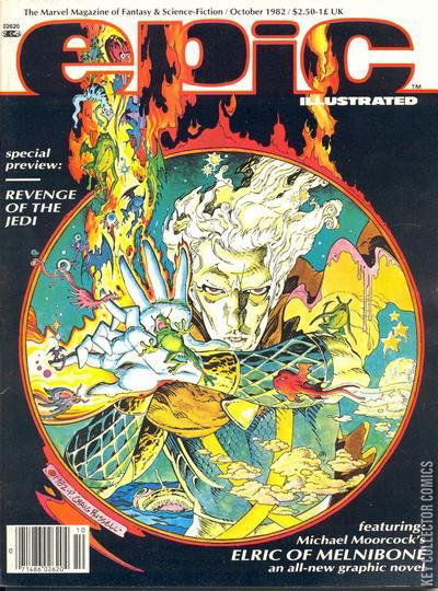 Elric of Melniboné: "While the Gods Laugh," plus "Messiah," "Abraxas and the Earthman, Chapter 5: Belly of the Beast," Dr. Watchstop: "One Cell At A Time," Cholly and Flytrap: "The End," "Hirewire," "Pit Stop," "Dream & Image: The Art of P. Craig Russell," and "Revenge of the Jedi" movie preview.