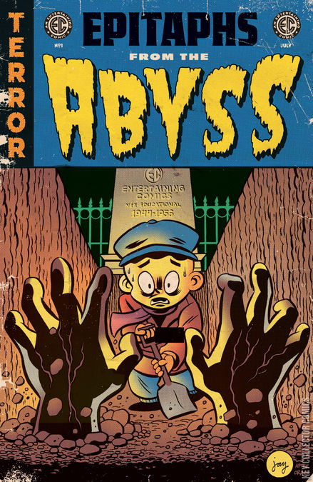 THE MOST NOTORIOUS NAME IN TERROR IS BACK—WITH A VENGEANCE! From the publisher that drove Tales from the Crypt, Vault of Horror, Haunt of Fear, and many more into the depraved hearts of an unsuspecting world, the immortal EC COMICS returns . . . with its first ALL-NEW series in nearly 70 years! In our first extra-sized, 40-page dose of fear, witness shocking tales of torment and tension in the undying EC tradition—as wrenched from the grave by the vile intentions of acclaimed writers Brian Azzarello (Batman: Damned, 100 Bullets), Chris Condon (That Texas Blood, Night People), J. Holtham (FX's The Handmaid's Tale), and Stephanie Phillips (Harley Quinn, Grim) and realized into bloody reality by "all-slaughter" artists Jorge Fornes (Rorschach, Danger Street), Phil Hester (Family Tree), Peter Krause (Irredeemable), and more! What the Comics Code Authority couldn't kill has only made it stronger . . . EC COMICS LIVES AGAIN IN EPITAPHS FROM THE ABYSS!