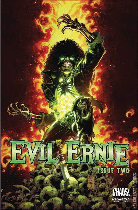 The rebirth of the bad boy of comics continues in this high voltage rock n' roll fantasy by writer Scott Lobdell and artist Ariel Medel! Ernest - we're getting to now know him as Ernie, as in "Evil" Ernie" faces the repercussions from the previous issue as the horror of what he's becomes grows and his memories darken... Lobell and Medel are joined this month by Philip (Uncanny X-Men) Tan, who joins the zombie king himself - Arthur Suydam -- to deliver the hottest horror covers around! Evil Ernie first appeared in December 1991! Celebrate 30 years of CHAOS!