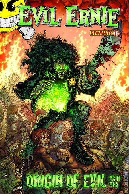 ORIGIN OF EVIL PART 1! Ernest Fairchild was a kind and gentle soul...until one day something in him snapped, leading him to one of the most notorious killing sprees in American history. With 665 kills to his name, "Evil Ernie" requires ONE more murder to complete the ritual he started and seal his deal with the Devil. Problem is: he's just been EXECUTED! What led an ordinary boy to become a leather-clad angel of death? How does he wield such blasphemous power? And what is the secret behind his hideous smiley-face button? This[PUBLICATION MONTH], you may hate the sin, but you'll LOVE the SINNER! Jesse Blaze Snider (HULK: LET THE BATTLE BEGIN) and JASON CRAIG (FREDDY VS. JASON VS. ASH) dive into the heart of darkness with Dynamite's bold, terrifying new relaunch of EVIL ERNIE!