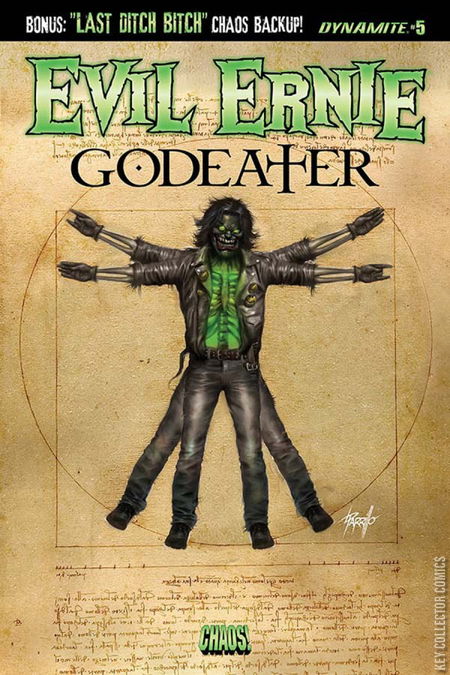 The Godeater has defeated the Hosts of Heaven, the Armies of Hell, and the warriors of Valhalla. The end of all things is here, unless Ernie can destroy something that can't be destroyed. It's the fearsome finale to Justin Jordan's Chaos Comics epic... and perhaps the most senses-shattering event in Ernest Fairchild's un-life! Meanwhile, our "Last Ditch Bitch" back-up series comes to its explosive conclusion, as Chastity and Mistress Hel throw down over the fate of singer Liv Halvorsen!
