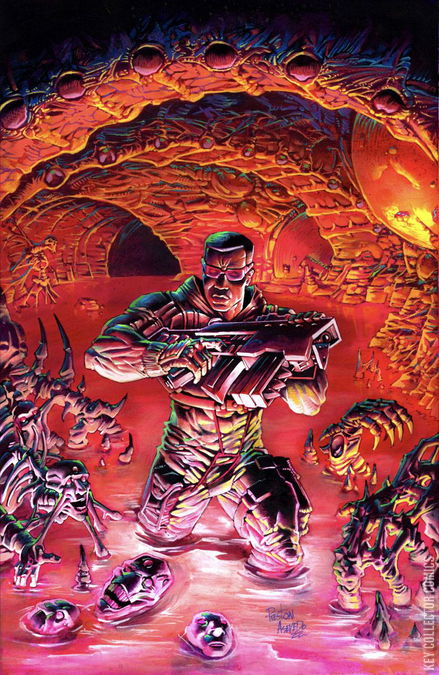 Cover by Heavy Metal artist Preston Asevedo as a virgin variant. WESLEY SNIPES (The producer and star of the Blade franchise) presents his original series, THE EXILED, a genre-bending Sci-Fi Noir described as 'Seven meets Blade Runner.' Roach ventures underground to uncover the Serial Killer's hidden lair, but instead finds a race of alien refugees that have been on Earth for five-thousand years. The C.O.R.E. believes Roach has betrayed them, and Gentry initiates OPERATION PURGE, which will exterminate all alien life on the planet.