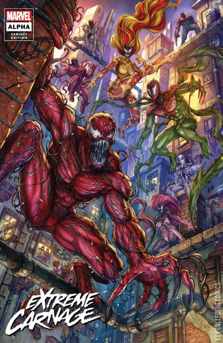EXTREME CARNAGE, PART 1 VIOLENCE RUNS IN THE FAMILY! As the dust continues to settle after the species-redefining KING IN BLACK saga, Eddie Brock and his son, Dylan, won’t be the only ones learning to adjust to a new normal. Collectively called the Life Foundation, symbiotes SCREAM, PHAGE, RIOT, LASHER and AGONY have tried to reconcile the sometimes-noble intentions of their hosts with their often-bloodthirsty impulses. But the Life Foundation symbiotes aren’t the only ones with a part to play in this story, and they aren’t the only symbiotes who find themselves reinvented after KING IN BLACK . They have an older sibling who may be reinvented in its own right: CARNAGE. CONTINUED IN EXTREME CARNAGE: SCREAM