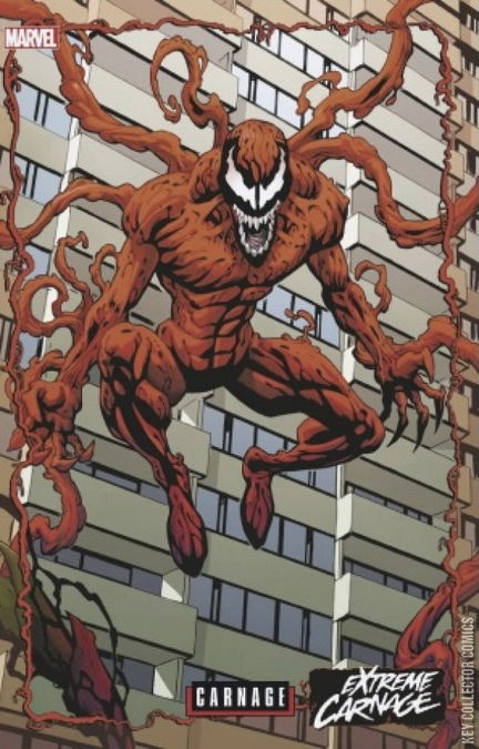 EXTREME CARNAGE, PART 1 VIOLENCE RUNS IN THE FAMILY! As the dust continues to settle after the species-redefining KING IN BLACK saga, Eddie Brock and his son, Dylan, won’t be the only ones learning to adjust to a new normal. Collectively called the Life Foundation, symbiotes SCREAM, PHAGE, RIOT, LASHER and AGONY have tried to reconcile the sometimes-noble intentions of their hosts with their often-bloodthirsty impulses. But the Life Foundation symbiotes aren’t the only ones with a part to play in this story, and they aren’t the only symbiotes who find themselves reinvented after KING IN BLACK . They have an older sibling who may be reinvented in its own right: CARNAGE. CONTINUED IN EXTREME CARNAGE: SCREAM