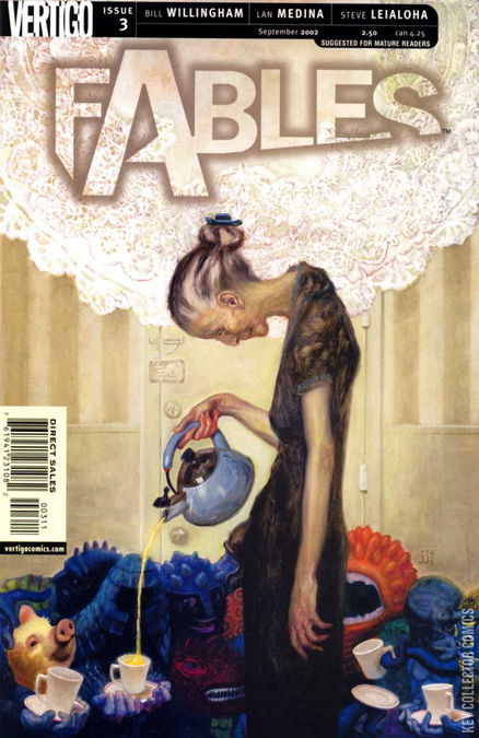 In which the boys make a big mess, more blood is spilled, and a determination is made about a missing fable. In Greenwich Village, in the apartment below Rose Red's, Bigby has Boy Blue and Flycatcher simulate the crime scene. They are to recreate Rose's apartment in order to determine how much blood Rose must have lost.Snow visits King Cole. He apologizes for her sister's disappearance and tells her he received a complaint from Bluebeard that Bigby accused him of murder. Snow says that the accusation seemed to come out of the blue but agrees that he could be a suspect given his past of murdering his wives. She tells him of the other leads they looked in on and also the fact that she's a suspect too. Bigby's final thought was perhaps the Adversary could be involved. It is possible that one or more of his agents may have followed them from the homelands to continue the war. King Cole makes it clear that he wants all of this settled by Remembrance Day. That is the day they receive all their donations to run their government. The Fables want to be able to celebrate the old days. A murder investigation could put a damper on things.Bluebeard prepares a tray of food and sharpens his knife as Bigby arrives in Snow's apartment with Jack's computer. He tells her that he needs her to look into Jack's files because computers hate him. He says that he has pretty much figured out what happened at Rose's apartment and some of the why, just not the who part. Bigby heads down to see Jack. On his way, he tells Grimble it's Jack's feeding time. Grimble tells him that Bluebeard already went down to feed him, claiming that Bigby authorized it. Running down, he turns into wolf form and finds Bluebeard with his knife to Jack's throat. Bluebeard says he wants to find out what happened to Rose. Bigby tells Bluebeard to go ahead and kill Jack. Then he'd have reason to kill Bluebeard and get both of them out of his life.Meanwhile, Snow is on her way down with reinforcements of her own. As...