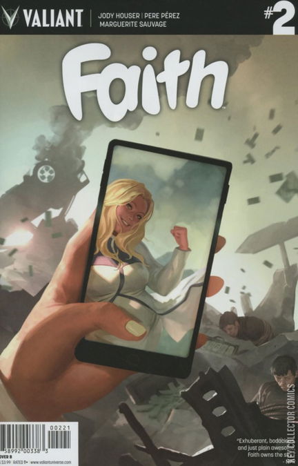 Faith Herbert… Prisoner of the Hollywood Hills! Trapped with no aid in sight, Faith is coming face to face with her very-first supervillain! LA’s own sky-soaring hero always wanted to be like the comic book characters that inspired her…but is she ready to deal with the consequences of being a bonafide superhero? And, as if a new arch-nemesis weren’t enough, a shadowy figure is closing in on Faith’s secret identity! How’s that for a cliffhanger?! Faith’s headline-grabbing adventures continue here as breakout writer Jody Houser (Orphan Black) and sensational artists Pere Pérez (ARCHER & ARMSTRONG) and Marguerite Sauvage (DC Comics Bombshells) deliver the next high-flying chapter to the all-new ongoing series read ‘round the world!