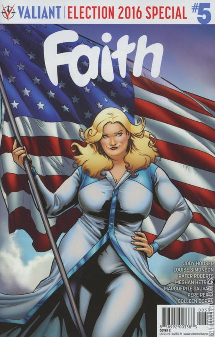 A VALIANT ELECTION 2016 SPECIAL! A MAJOR COMICS MILESTONE! On November 2nd, just days before Election Day 2016, legendary writer Louise Simonson and Harvey Award-nominated artist Pere Pérez present history in the making with a presidential milestone like no other! Faith Herbert, star of the highest selling independent superhero debut of 2016, is a shining beacon of optimism in a challenging world. Her day job as a blogger and journalist is about to bring Faith face to face with Democratic Presidential nominee Hillary Clinton…but its her daring alter ego as Los Angeles’ leading superhero that will have to save the day when a new threat emerges to imperil a pivotal moment that has all of America watching! Also coming in the oversized, 48-page FAITH #5 election special: rising star Meghan Hetrick (Red Thorn) joins the Faith creative team of Jody Houser (Orphan Black) and Marguerite Sauvage (Thor) as a brand new chapter of Faith’s life begins - and a threat that hits too close to home makes itself known! Plus: an exclusive prelude to HARBINGER RENEGADES #1 – featuring the long-awaited return of Faith’s beloved superteam – by writer Rafer Roberts (A&A: THE ADVENTURES OF ARCHER & ARMSTRONG) and artist Colleen Doran (Amazing Spider-Man)!