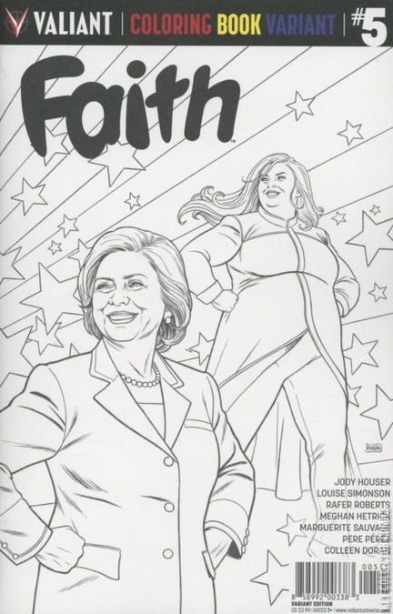 A VALIANT ELECTION 2016 SPECIAL! A MAJOR COMICS MILESTONE! On November 2nd, just days before Election Day 2016, legendary writer Louise Simonson and Harvey Award-nominated artist Pere Pérez present history in the making with a presidential milestone like no other! Faith Herbert, star of the highest selling independent superhero debut of 2016, is a shining beacon of optimism in a challenging world. Her day job as a blogger and journalist is about to bring Faith face to face with Democratic Presidential nominee Hillary Clinton…but its her daring alter ego as Los Angeles’ leading superhero that will have to save the day when a new threat emerges to imperil a pivotal moment that has all of America watching! Also coming in the oversized, 48-page FAITH #5 election special: rising star Meghan Hetrick (Red Thorn) joins the Faith creative team of Jody Houser (Orphan Black) and Marguerite Sauvage (Thor) as a brand new chapter of Faith’s life begins - and a threat that hits too close to home makes itself known! Plus: an exclusive prelude to HARBINGER RENEGADES #1 – featuring the long-awaited return of Faith’s beloved superteam – by writer Rafer Roberts (A&A: THE ADVENTURES OF ARCHER & ARMSTRONG) and artist Colleen Doran (Amazing Spider-Man)!