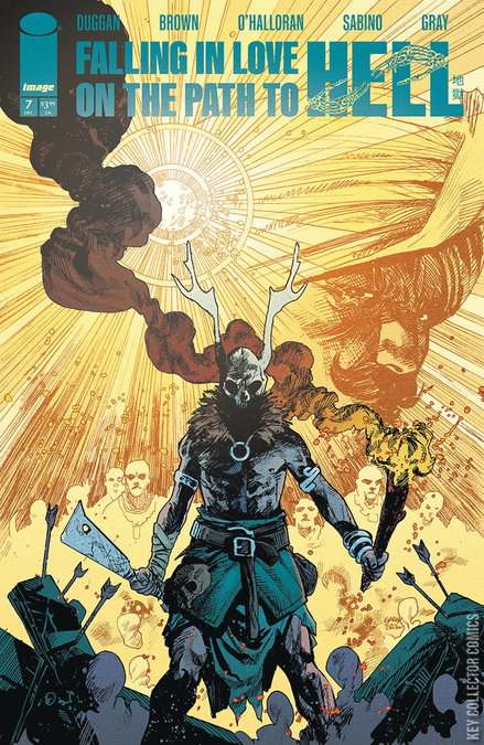 Asami and MacRaith's exploration of the island doesn't go as planned when a terrifying new player emerges from the forest: this is the first appearance of the Butcher of Caledonia! He's into rough stuff. As if the lovers' lives weren't hard enough. Mohan and his cultists are still trying to kill them, and the sabotage that prevents any escape from the island must be dealt with if they have any hope of leaving purgatory. Happy holidays from hell!