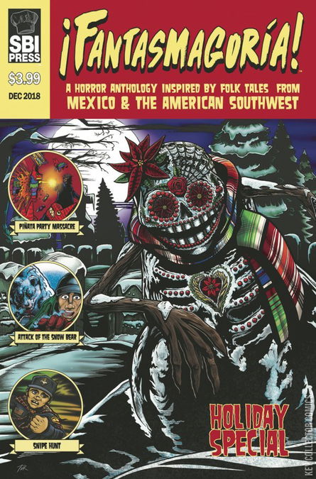 ¡Feliz Navidad, Fantasmagoría fans! Your favorite quarterly horror anthology based on real folklore from Mexico and the American Southwest is back, just in time for the holidays! This time around we're filling your stockings with three brand new stories about killer toys, haunted snowmen, and winter break rituals gone wrong! When greedy business owners build a confitería atop an ancient Aztec burial ground, the ghosts of 666 ticked-off Mexica warriors possess the store's stock of colorful piñatas and wreak havok on the town! While celebrating an unprecedented snowstorm in New Mexico, two orphans dress their snowman in the clothes of a deceased relative, triggering the darkest "Christmas miracle" you've ever seen. And more!
