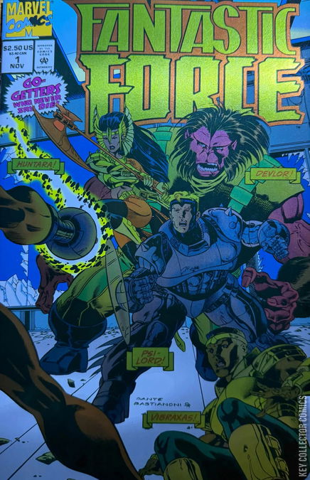 - 1st team appearance of the Fantastic Force: Psi-Lord, Vibraxas, Huntara, Devlor