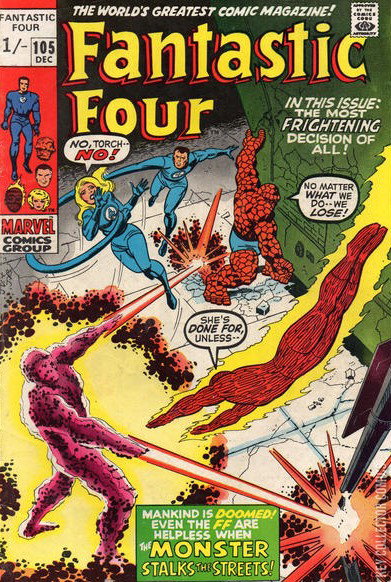 THE MONSTER IN THE STREETS! While out getting a hot dog with Ben and Johnny, Crystal begins to feel dizzy and sick when, suddenly, there is an earthquake caused by a strange energy source. Johnny leaves with Crystal to see what Reed can learn about Crystal's sudden illness, leaving Ben to tackle the problem alone. Johnny arrives at the Baxter building with Crystal to find Reed experimenting with new ways to change Ben back to normal. Reed puts his work aside to test Crystal and find out her problem. Elsewhere, Sue is shopping when another earthquake strikes, and she confronts a strange energy creature. She is met by Dr. Zolten Rambow who implores Sue to stop the creature but not to destroy it, because it is a living being. Back at the Baxter Building, Reed learns that the cause of Crystal's illness is due to the pollution in the rest of the world and, to survive, Crystal must return to the Hidden Land. He also discovers from testing her blood a method to change Ben. Crystal bids farewell to Reed, Ben, and Johnny and is transported home by Lockjaw. Johnny flames on in anger and flies away to clear his head. After Johnny finds Sue trying to keep the monster contained, she asks him to go get Reed to help. Returning back to the Baxter building, Johnny finds that Reed has already started the experiment to change Ben back to normal and requires Reed's constant attention at risk of Ben's death. Reed now must choose whose life to save: his best friend or his wife.