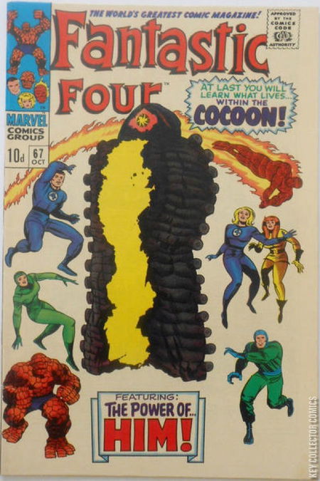 WHEN OPENS THE COCOON! After examining the footage of Alicia's abduction, Mister Fantastic begins working on replicating the device that allowed her abductor to pass through a solid wall to wherever he came from. After getting components from Tony Stark, Reed is finally ready to complete the process that will eventually help them find out where Alicia was taken. Meanwhile, deep within Lock 41 of the Beehive, Alicia Masters and Hamilton continue down the tunnel to find the artificially created man known as Him. The scientists' creation fights back with blasts and beams of energy that keep Hamilton back, but Alicia presses along on her own despite his protests. When Hamilton tries to go after her, he is caught up in strange tendrils that come out of the walls. While outside in the main lab, the other scientists monitor the progress. With fears that Him may be impossible to control, Shinski shows them their final fail save, a device that will create an ultrasonic wave that will send Him into the deepest reaches of space where the artificial man will be no threat to them. Back at the Baxter Building, Sue, Johnny, Ben and Crystal all sit down for breakfast while they wait for Reed to emerge from his lab. After two days of work, Reed believes that the device used to kidnap Alicia has been correctly duplicated. Back at Lock 41, Alicia finally makes it to Him where she learns that the artificial being has sealed himself in a cocoon. Ready to emerge from his chrysalis, Him admits that he is weak and frightened, but Alicia assures Him that she will remain there for the duration of this metamorphosis. At that very moment, Reed completes his assembly of the device. He tells Sue and Crystal to remain behind. Holding Ben and Johnny's hands, Reed surprises everyone when the trio suddenly pass through a solid wall and end up at the Beehive complex where Alicia is being kept. There they are attacked by the guards, and respond in kind. Deep within Lock 41, Hamilton catches up with Alicia and is surprised to find that Him will emerge from his cocoon in moments. Seeing their creation as an evil abomination of science he tries to destroy it but Him fights back with a single blast, stunning both Alicia and Hamilton before beginning his final transformation. By this time, the Thing has managed to force Alicia's location out of one of the guards and the Fantastic Four rush to her rescue. Inside Lock 41, Hamilton is leading Alicia to safety when a wall collapses on him, killing him. Alicia is then found by Ben and Johnny. They quickly flee the scene as Him's power levels continue to rise. As the Fantastic Four leave, the scientists who created Him realize that their experiment has gone too far and try to activate the device to abort Him into space, but it fails to work. As the Fantastic Four and Alicia pass through the doorway back home, Him emerges from Lock 41. The perfect, golden-skinned and blonde-haired man admonishes his creators for creating him for their evil ends and sentences them to death. Suddenly, the Beehive explodes, seemingly slaying all within.