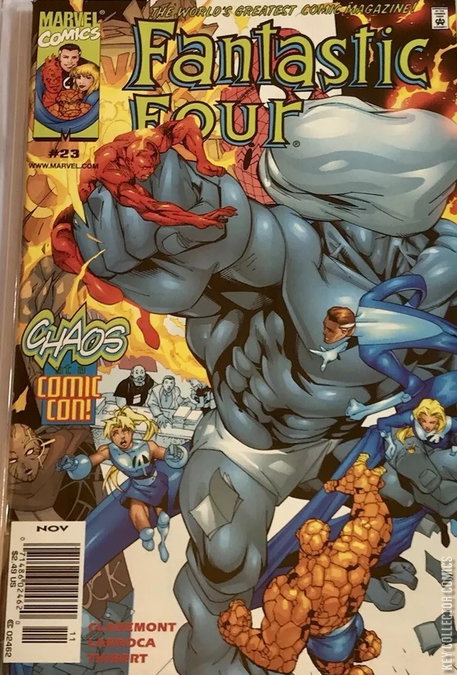 The Fantastic Four invade the 1999 San Diego Comic Con! Racing against the clock, the FF must find a cure for the nanite infection that has attacked the Thing and guest-star She-Hulk?which leads them to... a comic book convention?! Plus: The Red Skull, the Mad Thinker and his awesome android! And finally, just who is Valeria Von Doom?!"