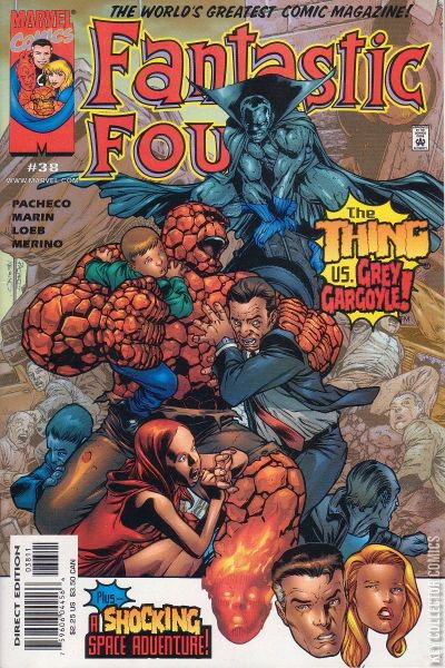 Fear the touch of the Grey Gargoyle! His merest graze can turn you to stone, something that Ben Grimm knows a Thing or two about! What will happen when these two gods of granite collide? And where'should the rest of the Fantastic Four? Just when it looks like The Thing has beaten the Grey Gargoyle in their fight, this new foe turns Ben into stone. We can see that the Grey Gargoyle is working together with another foe, a woman later to be revealed as Senso. The missing three members of the FF enter the scene at the end of the story and Mr. Fantastic tells both the Grey Gargoyle and Senso to step away from the Thing.