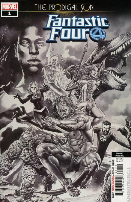 CHAPTER 1 OF 3 The first of three interconnected special issues featuring the FANTASTIC FOUR, the SILVER SURFER and the GUARDIANS OF THE GALAXY! Introducing PRODIGAL, a strange alien being who has crash-landed in the Savage Land. When he becomes worshipped by a race of swamp-dwelling barbarians, Ka-Zar and Shanna call upon the Fantastic Four to aid them in stopping the barbarians’ plans to conquer the entirety of their world. Join Prodigal on his lengthy journey to try to return home to settle old scores.