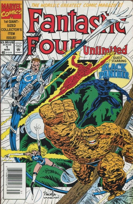 Invited to Wakanda, the Fantastic Four's ship is suddenly struck out of the sky. Trying to contact T'Challa, Mister Fantastic fails to get a direct signal, but they realize that something is very wrong. The Thing tries to get the ship under control but the controls break and the ship suddenly comes apart in mid-air, forcing the team to begin evasive maneuvers to try and get to the ground safely. While the Torch is able to get to the ground under his own steam, Mister Fantastic uses his body to create a parachute for his wife to land safely. While the Thing just slams into the ground but is unharmed. The Fantastic Four are then attacked by men wearing strange body armor and high tech weaponry, capturing the Thing and the Torch. Reed and Sue manage to evade capture when Sue turns them in invisible so they can see what their mystery attackers are up to. Suddenly before the mercenaries can detect Reed and Sue with their heat sensors, the Black Panther and his Panther Posse suddenly leap from out of the jungle and attack. With Ben and Johnny freed, Reed and Sue make themselves visible and join the fight as well. As the battle rages, Reed gets to postulating some theories on the nature of the mercenaries unique armor. Getting a Vibranium knife from one of the Panther Posse, Mister Fantastic tests out his theory by using it on one of the soldiers causing his armor to harmlessly explode. Realizing the armor is made out of solid sound, the Panther Posse come at their attackers with their Vibranium weapons, forcing them to flee. Suddenly they realize that the Black Panther's old foe Klaw is the on responsible for this invasion of Wakanda