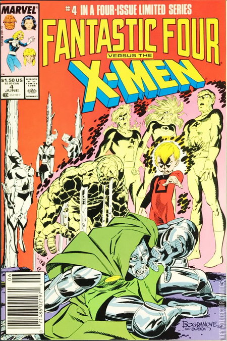 The FF fly to Latveria to help Shadowcat. Mr. Fantastic is beset by doubts, while the Invisible Woman and the Thing discuss the situation. Meanwhile, the Torch fills She-Hulk in on how Doom and Reed met at College and what the source of their rivalry is. In Latveria, Franklin’s dream-self visits and tries to cheer up a desperate Kitty, while the X-Men nervously wait. Outside the castle, Magneto tells Storm about his past and the loss of his family. As he lashes out with his magnetic powers, Doom warns him that another such outburst might damage his machinery meant to help Shadowcat. When the FF land, predictably a fight starts, which is stopped only by Franklin. Later, the FF watch Doom starting the reintegration process. However, Reed suddenly stops it when he sees what he believes to be a mistake. As Magneto inadvertently damaged the computers, the process has to be done manually. Reed finally overcomes his doubts and comes through, saving Kitty, though it will take a long time for her to completely recover. Later, Magneto and Reed make peace, while Sue confronts Doom with her realization that he is responsible for the forged diary. She leaves without a fight, content that her family has won and Doom will never comprehend why – that’s his tragedy.