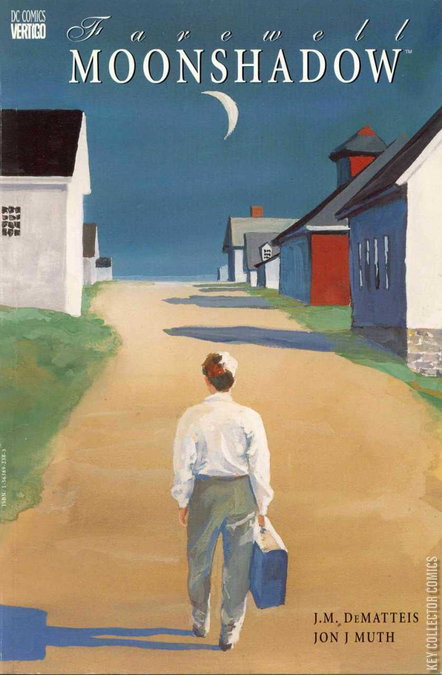 Serves as the epilogue of sorts for the 12 issue series, Moonshadow, which was originally released through Marvel's Epic line, and then republished under DC's Vertigo. Most of the book consists of typewritten pages on the left-hand side and painted splash pages on the right.This stand-alone story plays more with the idea that Moonshadow is an unreliable narrator and may have made up some or all of the story presented in the original Moonshadow series.It begins with Moonshadow as an old man at his birthday party, surrounded with objects that hint at the characters and objects from his earlier "Journey to Awakening," as he often described it. It is a giant party with many people. He sits in a wheelchair with his cat Frodo, still alive, on his lap. Then he remembers (or makes up) the story of his young adulthood, some years after the events of Moonshadow.He returns to the planet Pillbox, where he had lived with Gaylord and his friends many years before. He is still (or once again) melancholic. He starts up a storefront as a tinker, and lives quietly for some time, dreaming of his many dead friends and family.However, his old friend Bettina, now a young woman herself, recognizes him. They both start voyeuristically stalking each other without the other knowing. Finally her Aunt Marigold Flimflam forces them to actually talk to each other and admit their love. They are soon married.Back at the aged Moon's birthday party, he sees an old woman who gives him a kiss and a snowglobe showing a happy family. The woman's identity is unknown but she could be Bettina.The younger Moon and Bettina have children, and live a life of love and peace, although he still has a certain existential yearning.Then one day a freak storm kills his whole family.Moon is once again bereft of all his loved ones. He sinks into a despair deeper than any before. He tries to kill himself multiple times, but each attempt fails, as if it's impossible for him to die. He lost all his money and was put in jail...