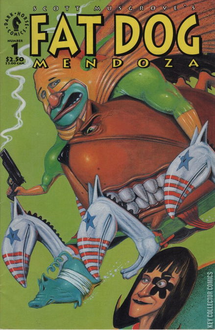 Dark Horse Comics is pleased to present a dog that you can really sink your teeth into! Not since the Terminator has there been a more suave and sophisticated man-dog-o'-action like this one! You'll thrill to the wild adventures of this conversing, corpulent, consort-killing canine as he takes off in the first comic of his very own! Join Fat Dog and his crime-fighting friend the Whoosh, Siamese Moms and a host of other characters. This issue also includes a special origin episode!