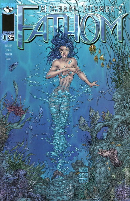 There are two worlds. The one we know, and the one below. Aspen Matthews was a marine biologist who, in a failed experiment, discovered that she is actually a water nymph, able to live and thrive beneath the water. Each of Fathom #1's three covers has unique pages telling the story from a different character's perspective.