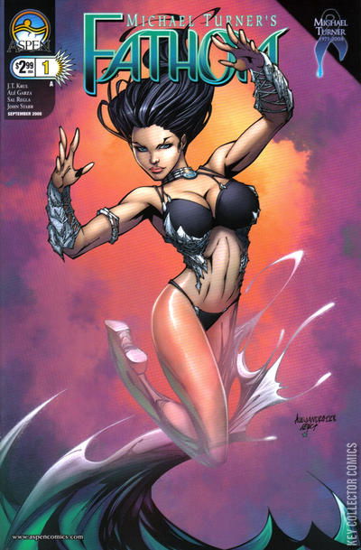 The seas are rising once again as issue #1 of Michael Turner's Fathom debuts! The long-docile race of the Blue no longer want solitude in their underwater habitat after the human's latest attack - they now want revenge! After thwarting the invasion of the Blue cities by Admiral Maylander's Navy, Aspen Matthews and Chance Calloway have found some much needed seclusion together in a beach house south of the border. But, their romantic getaway will be short-lived as the return of the murderous Killian, now at full-strength, is ready to strike once more against the humans - along with his reunited daughter, Kiani! Plus, the hatred from below the surface is also shared by one other race - the ancient and most powerful underwater beings known as the Black! However, the US Navy has plans of their own for the Blue, as well as a new leader with special ties to both Aspen and Chance! Available with covers from Ale Garza, J. Scott Campbell, and Micahel Turner!