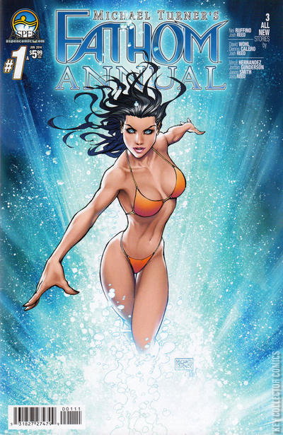 Michael Turner's FATHOM returns! Aspen's first ever FATHOM ANNUAL arrives, jam-packed with three all new stories featuring some of the most popular characters in the Fathom universe-and more! Join veteran FATHOM writer David Wohl as he gives us an inside look at Aspen's former love interest, Chance Calloway, and his thrilling exploits away from her, as he adapts to a whole new world of Blue and Human cooperation! Fan favorite illustrator Nei Ruffino debuts a new FATHOM story all her own, as she handles the writing and art duties in a special tale featuring Aspen Matthews and her new close friend Judith! And Fathom: Kiani writer Vince Hernandez takes Aspen Matthews on a journey to discover a lost city hidden deep under the surface of the water, only what she discovers instead is far more shocking! Don't miss out on the debut of the first ever FATHOM ANNUAL #1 in this thrilling oversized issue featuring a re-mastered FATHOM cover by series creator Michael Turner and Peter Steigerwald!