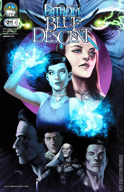 RETURN TO THE DEEP WITH MICHAEL TURNER'S FATHOM! The past comes crashing into the present in this final exciting issue of the all-new Aspen mini-series, FATHOM: BLUE DESCENT! Worlds collide in this epic finale as the Blue and the ancient race of the Black set forth events that forever mark the Fathom Universe--including Aspen Matthews! In his attempt to rescue his wife Eilah from the deadly clutches of Rahger and the Black, Abseloma may finally fill the missing void of patriarch for his fractured family...or he will die trying. With FATHOM's return at hand, some new creators and several familiar names are coming along for the ride! Taking charge of the writing chores is David Schwartz, known for his critically acclaimed Image Comics title Meltdown. Art duties for all of Aspen's curvaceous lines and intricate environments will be handled by Alex Sanchez of Spiderman Unlimited and JSA Classified fame. Together, this dynamic duo is looking forward to putting their stamp on FATHOM: BLUE DESCENT as never before! Over a decade's worth of answers spill out onto the pages of this exciting, all new FATHOM: BLUE DESCENT mini-series!