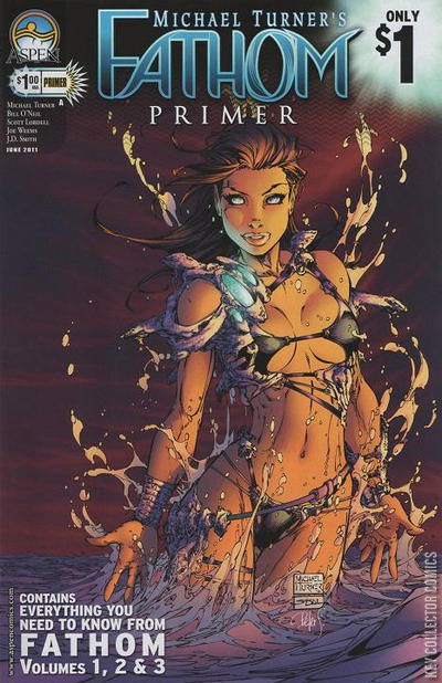 There are two worlds we know, the one above and the one below. . . In 1998, superstar artist Michael Turner created a world of shear wonder and awe beneath the surface of the ocean. Now, over 12 years later and prior to the release of FATHOM: Volume 4, you can relive the amazing journey of Aspen Matthews and her discovery of life beneath the waves in this awesome introductory $1 issue of FATHOM. Compiling together all of the exciting, must-see moments of the first three volumes of Turner's thrilling action-adventure series, brand-new FATHOM writer and acclaimed veteran scribe Scott Lobdell, along with Turner and the rest of the incredible talent that has contributed to the title over the years, take you on a pulse-pounding journey back through all the important benchmarks in the FATHOM universe, as they prepare you for the surprising upcoming events of FATHOM: Volume 4 along the way! It's the perfect way to introduce old and new fans alike to the world of FATHOM, as over a decade's worth of answers and excitement spills out onto the pages of this amazing, value priced, all-in-one FATHOM: PRIMER issue!