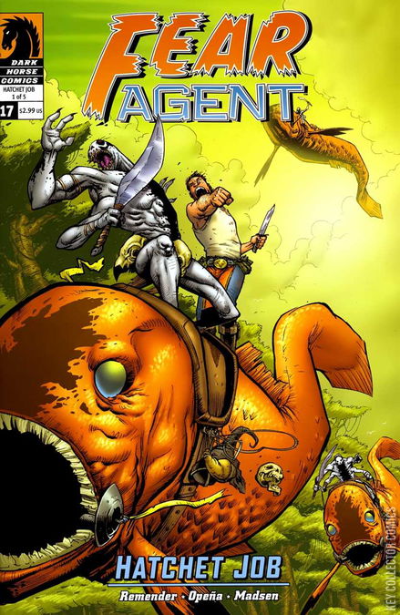 "Hatchet Job," Part 1 of 5 With little hope, left Heath and Mara are forced to separate on two desperate missions to either relocate the remnants of humanity to a new world or cleanse Earth of the infestation of Feeder aliens. On the road to the Feeders' home world, to seek the monsters' natural predator, Heath finds himself facing the consequences for deeds committed by humanity years before. On the other side of the galaxy the motivations for Mara's treachery hold dire consequences for Charlotte and the new Fear Agents.