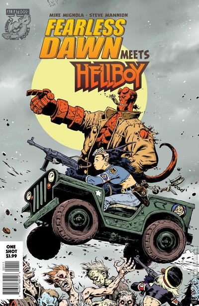 It's all out pulp adventure as Mike Mignola's Hellboy teams up with Steve Mannion's legendary underground comic hero, Fearless Dawn! A misadventure in Romania drops Hellboy into the middle of the paranormal mission of Fearless Dawn's crew. But this meeting of heroes ain't no picnic when the undead 666th Panzer Division shows up. Beautifully co-illustrated by Mike Mignola and Steve Mannion. For the hardcore collectors out there, Albatross offers a special limited-edition card stock cover of Fearless Dawn Meets Hellboy with art by Mike Mignola!