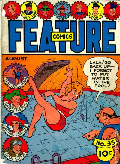 A collection of comics and stories, including "The Return of Wampum" , featuring the Dollman : Wampum pays Darrell Dane a visit after finding a black oil well on his land and becoming very rich. Unfortunately, Wampum is ignorant of the big city and its dangers, and blabs all over about how rich he is. When the wrong ears catch wind of this, Dollman must intervene to save Wampum from crooks. -- Plus : Zero the Ghost Detective, Captain Fortune, the Voice, and more!!