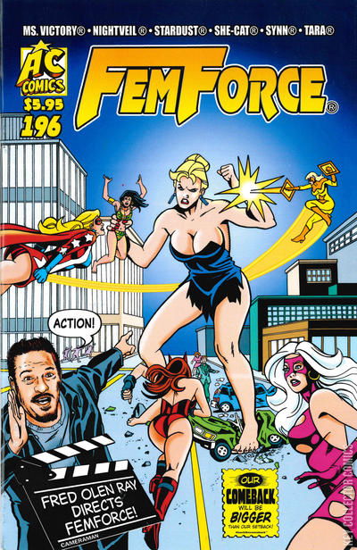 There's big trouble for Femforce again when Stella Stargaze, who became giant-size recently, stars in a new Fred Olen Ray production filmed in Florida, a sequel to his Attack of the 60 Foot Centerfold. It's "Stella By Starlight" by Bill Black and Eric Coile. Full color on glossy stock!