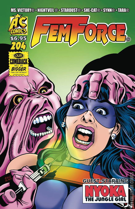 Beyond the dimensional portal hidden in the caves of Taragonia, the evil Loggriss extracts DNA from captives Nightveil and Nyoka. Loggriss formulates serum to create monsters used to attack the Earth. Tara and her jungle girls along with Ms. V and Femforce rush to combat this new menace.