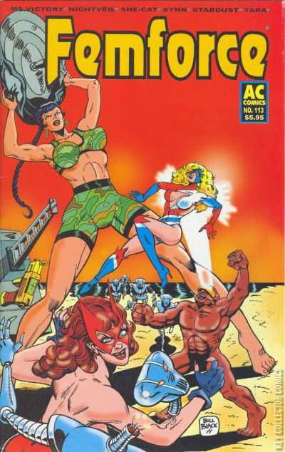 It's the latest adventure of the best-looking super-group in comics history, as the Femforce meet up with an old enemy -Gorgana! The hideous she-demon strikes while the FF is aiding there colleague, Dr. Carlos Jimenez with a delecate experiment involving his Time Triangle. See the giantess, Too Tall Tara smash malevolent robots! See She-Cat at her snarling, savage best! See Ms. Victory, Synn , Nightveil and Stardust in action again, in "Gorgana At The Gate". Story and pencils by Scott Nemmers, with inks by FF creator Bill Black and Mark Heike. Guest starring Paragon, Commando D, Astron and Astra. Also, this issue features an "Untold Tales Of Tara" story, starring the FF's resident jungle girl and her pal Janis Lawson as they meet up with the murderous Dr. Rivits and his sadistic daughter Roxanne in "Creeping Unknown", by Bill Black. (This tale is an homage to the great jungle glamor artist, Jay Scott Pike.) Plus, a Golden Age reprint- Miss Victory in action straight out of the 1940's, as she breaks up an Axis spy ring intent on stealing confidential papers. Art by Charles Quinlan. All this and a pinup portfolio, photos, and a rundown from publisher Wild Bill on upcoming projects.