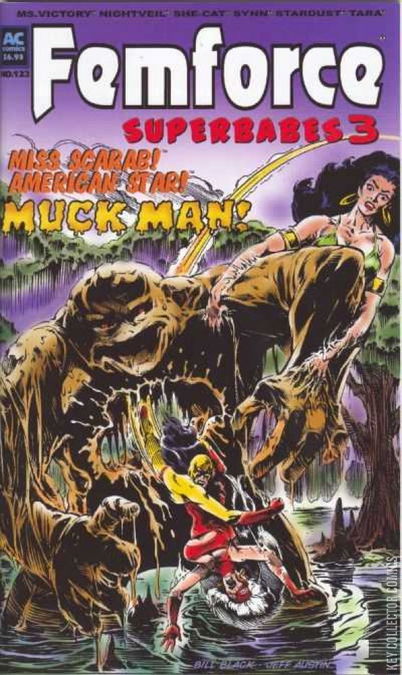 The fabulous Femforce (with this issue's spotlight on Ms. Victory, Synn, Stardust and Tara) find themselves at Carteque Labs, home base of featured guest-stars Rocketman and Jet Girl , facing off against the sickening spawn of Dr. McNabb at his/it's slimiest; When a malevolent terrorist operative is thrown in the mix, can even special cameo guest Fighting Yank help the forces of right prevail?