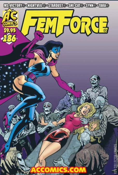An elite, extra-dimensional security force “recruits” Ms. VICTORY as a new member. Can the rest of the FEMFORCE stop her abduction? NIGHTVEIL returns to her quest for the Cloak of Darkness and stumbles upon a malevolent force instead, SHE-CAT must outwit an AI construct, and TARA’s Jungle Island faces a new threat. If THE most renowned, supremely-powerful security force in all the realities came to select YOU as it’s newest member, that would be quite a compliment, right? But, if the “honor” was basically bestowed against your will AND turned you into an inhuman creature, it might not be such a great deal after all, and that’s the danger Ms. VICTORY faces in “March of the Etherium”; written by Andrew Hawnt with art by Javier Lugo and Jeff Austin, and it may take the combined effort of the rest of the FEMFORCE to keep Ms. V on Earth and among them. NIGHTVEIL’s loss of the awesome Cloak of Darkness has been her biggest regret and greatest shame, but when she finally is able to resume her search for it, her first step leads to a fearsome force of evil instead. Strange things have been happening on TARA FREMONT’s Jungle Island as of late, but when new hazards (both legal and otherwise) to control of the wildlife refuge come up, a full-time security monitor must be installed- but it WON’T be TARA herself!! And, when threats on the life of an unassuming software engineer baffle both him and the police, it’s up to SHE-CAT to figure out that the source is something non-human, in “One Shot”, scripted by Andrew Hawnt. Then, that interplanetary adventurer STORMY TEMPEST returns to face the fight of her life in “The Maze”, written by Mark Heike. All of these gripping adventures (featuring great art by AC regulars including Dave Matsuoka, Francesco Savi, Florentino Cuevas, Jeff Austin and others) and a few more surprises will be found in FEMFORCE #186!
