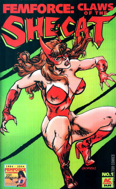 AC Comics presents revived superheroes from the Golden Age in brand new stories. This issue reprints two adventures of She-Cat from Femforce, including the hard-to-find Femforce #16. The Egyptian cat deity Sekhmet bonds with a modern-day woman, becoming the superhuman She-Cat; She-Cat battles an army of turtle–like creatures who have been abducting young women as part of their plan to conquer Earth. Mock Turtle Soup!; Barefoot and Malevolent!