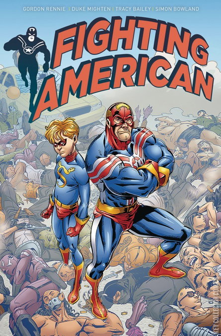 Direct continuation of Simon and Kirby's classic series! Fighting American returns! Written by Gordon Rennie with artwork by Duke Mighten! When the 1950s heroes find themselves trapped in the modern world, how will they handle what society has become, and what dangers will they face? With modern-day villains to contend with, enemies from their past pursuing them, and a whole new world to come to terms with, what daring adventures could Fighting American and Speed-Boy find themselves in now?