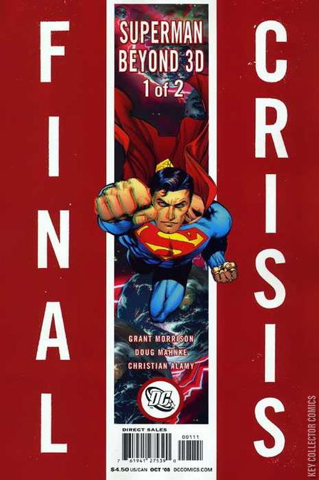 Superman Beyond To save the woman he loves, the greatest hero of all time becomes the pawn of ultra-dimensional forces when a wounded emissary from a world of doomed super gods comes to Earth on the eve of the Final Crisis. His mission: To recruit Superman's help against an epic, reality-spanning menace that originated in the Crisis on Infinite Earths! Join the Man of Steel and his alternate-earth counterparts for a mind-blowing voyage to the edge of the DC Universe — and beyond! Can these super champions overcome their differences to beat the clock, find the ultimate treasure and save all existence from extinction? Writer Grant Morrison and artist Doug Mahnke take you on an unforgettable, hyperdelic journey from the streets of Metropolis, through the 52 worlds of the multiverse, to the haunted court of the King of Limbo, in part one of this 2-issue Superman adventure! With a unique 3-D section, eye-popping visuals and mind-boggling glimpses into the mysteries behind FINAL CRISIS, SUPERMAN BEYOND takes the Man of Tomorrow to new dimensions of action and excitement! This issue comes with a pair of 3-D glasses!