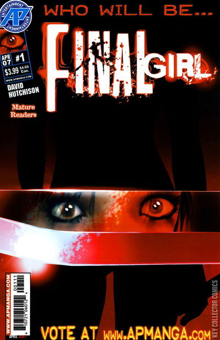 "Final Girl": A slasher film genre term referring to the last person alive to confront the killer. A group of young people mysteriously awaken in a seemingly abandoned, isolated town. They soon encounter the unspeakable terrors the town conceals and are stalked by its horrific inhabitants. As they desperately struggle to escape the nightmare the town has become, they must also find a way to put an end to the madness and death unraveling around them. But only one of them will be the FINAL GIRL! From the disturbed mind of David Hutchison (Oz: The Manga, Beowulf) comes this all-new series set in a world of unimaginable horror! Each issue is splattered in David's gore-drenched, full-color artwork! Coupled with an unhealthy dose of black humor, this is a totally new experience in grueling horror! Issue 5 will feature the thrilling climax, revealing which heroine the FANS have voted to be the FINAL GIRL!
