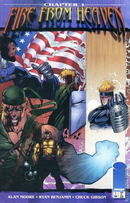 "Fire from Heaven, Chapter 1 of 14" A family is walking on the beach outside Kokkyo City, Gamorra, when suddenly troops from Stormforce, a division of Stormwatch, emerge from a submarine and march onto the island. They are being led by Hellstrike. Kaizen Gamorra sees this from a distance and is happy to see that his U.N. protection has arrived. Some Hunter-Killers tell Kaizen that the enemy is due to arrive tomorrow, and he says not to worry because the island can protect itself with laser satellite defenses, essentially attacking from above with "Fire from Heaven." Sure enough, the aircraft carrying Team 7, Sigma, and the Gen13 kids gets hit by a laser blast from one of Gamorra's satellites. Backlash, Dane, and Burnout are forced to abandon ship in the escape pod, while Grifter guides the plane in for a crash landing with the other still aboard. The crash is witnessed from shore, where we see a Ms. Anavi and her entourage being granted access to Gamorra by Stormforce operatives. Anavi mentions to one of her associates that she doesn't care whether Team 7 was in the crash or not, because she's just in Gamorra to find the Sigma clone. Nearby, Taboo and Jodi Slayton (Crimson) are watching, and Jodi comments that Anavi gives her the creeps. Taboo says that they just need to get to Gamorra City, find Cyberjack, and get him out of there. At the crash site, the survivors pick themselves off the beach and prepare to leave. Deathblow (Michael Cray) is acting strange, and eventually confesses that he had an ominous dream in which the sky above Gamorra was black with buzzards. He takes it as a bad omen. Unbenownst to them, Gamorran Hunter-Killers have discovered them, and they dispatch Cannon, Fahrenheit, and Flashpoint from Stormwatch to contain the intruders "with extreme prejudice." Fahrenheit objects, saying they are not here to kill anyone, let alone people identified as heroes, but Flashpoint and Cannon say that this is combat and you do what you need to do whether you like it or not. Cannon isn't happy about it, but Flashpoint seems eager. Meanwhile, in a Gamorran lab, a scientist tells Kaizen that the Sigma clone has a heartbeat and is now alive! In New York, at the Halo building, Zealot is trying to convince the other WildCATs to go with her to Gamorra to help Grifter. Warblade objects, seeing as Voodoo has quit the team, Marlowe is falling to pieces, and Majestic's team is busy with a crime war. Zealot insists that she is going to Gamorra with or without them. High above, in the space station Skywatch II, Weatherman is monitoring the crime war, the Gamorran situation, as well as events around the world. He weighs them all, but what really concerns him is that he can detect a rip in the fabric of space, something forming behind Earth's moon. Back on Gamorra, the crash survivors are heading through the woods to Gamorra City when they are attacked by Cannon, Fahrenheit, and Flashpoint. During the fight, Hunter-Killer reinforcements show up to aid Stormwatch. Deathblow, Lynch, and Sigma manage to escape, but Grifter and the Gen13 kids are subdued. Stormwatch leaves to chase Lynch's group while the Hunter-Killers guard the unconscious prisoners. They get orders to bring the prisoners in, but the leader holds a gun to Grifter's head and says that order doesn't apply because they won't be taking any prisoners.